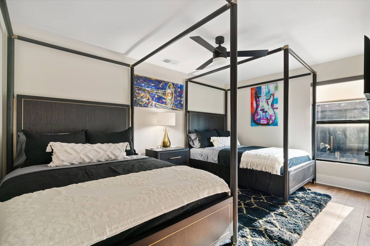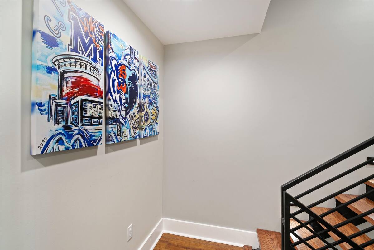 Welcome to your Modern Memphis themed townhome right in the heart of Memphis. Steps from Beale St.,Main St., and the FedEx Forum. This stunning property has 3 spacious bedrooms with bonus loft bedroom, 2 1/2 baths, two-car finished garage behind a gated entry. Rooftop oasis featuring outdoor seating and 65″ TV with views of downtown.